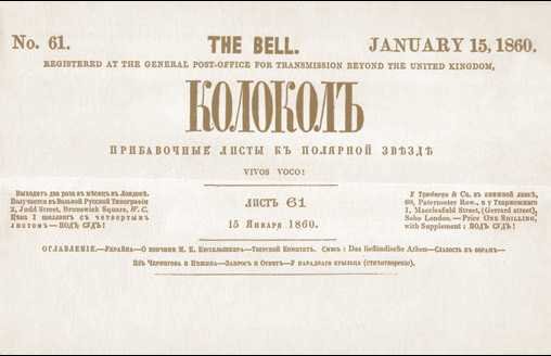 В 1852 г., после смерти жены, Герцен переехал в Лондон. В 1853 г. основал там «Вольную русскую типографию», в которой выпускал революционные прокламации. Там же начал печатать альманах «Полярная звезда» (в память о декабристах), в котором публ. запрещённые в России произведения. Вместе с Огарёвым издавал «Колокол». В своих публицистических статьях Герцен обличал самодержавие и крепостничество, вёл пропаганду социалистических идей, требовал освобождения крестьян с землёй, уничтожения цензуры, отмены телесных наказаний, введения гласного суда. Считал, что передовые дворяне в революции ещё не исчерпали себя, выступал против самоуверенности и узости разночинцев. В 1861 г. содействовал созданию в России тайного общества «Земля и воля». Выступления Герцена в поддержку Польского восстания 1863–64 гг. вызвали отрицательную реакцию у значительной части «образованного общества», а его негативное отношение к революционному экстремизму стало причиной конфликта с т. н. молодой эмиграцией.